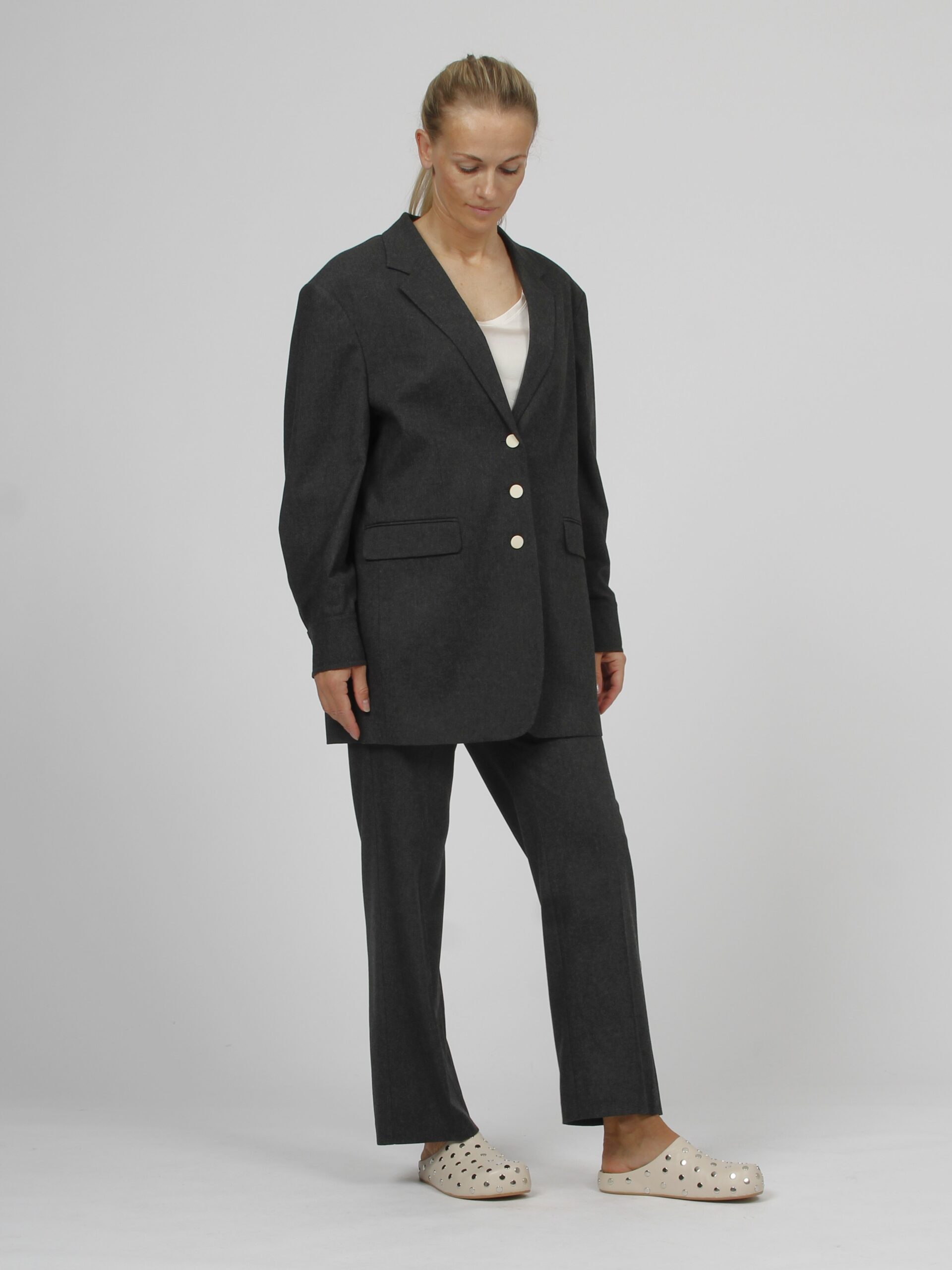 34% viscose, 33% polyester, 32% wool, 1% elastan
