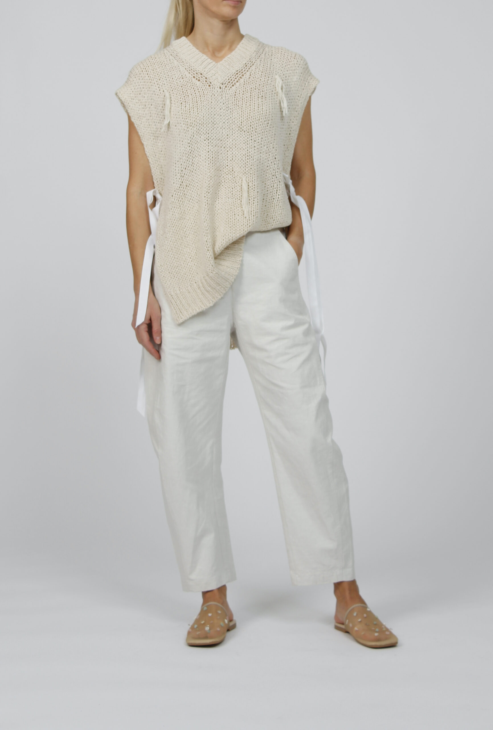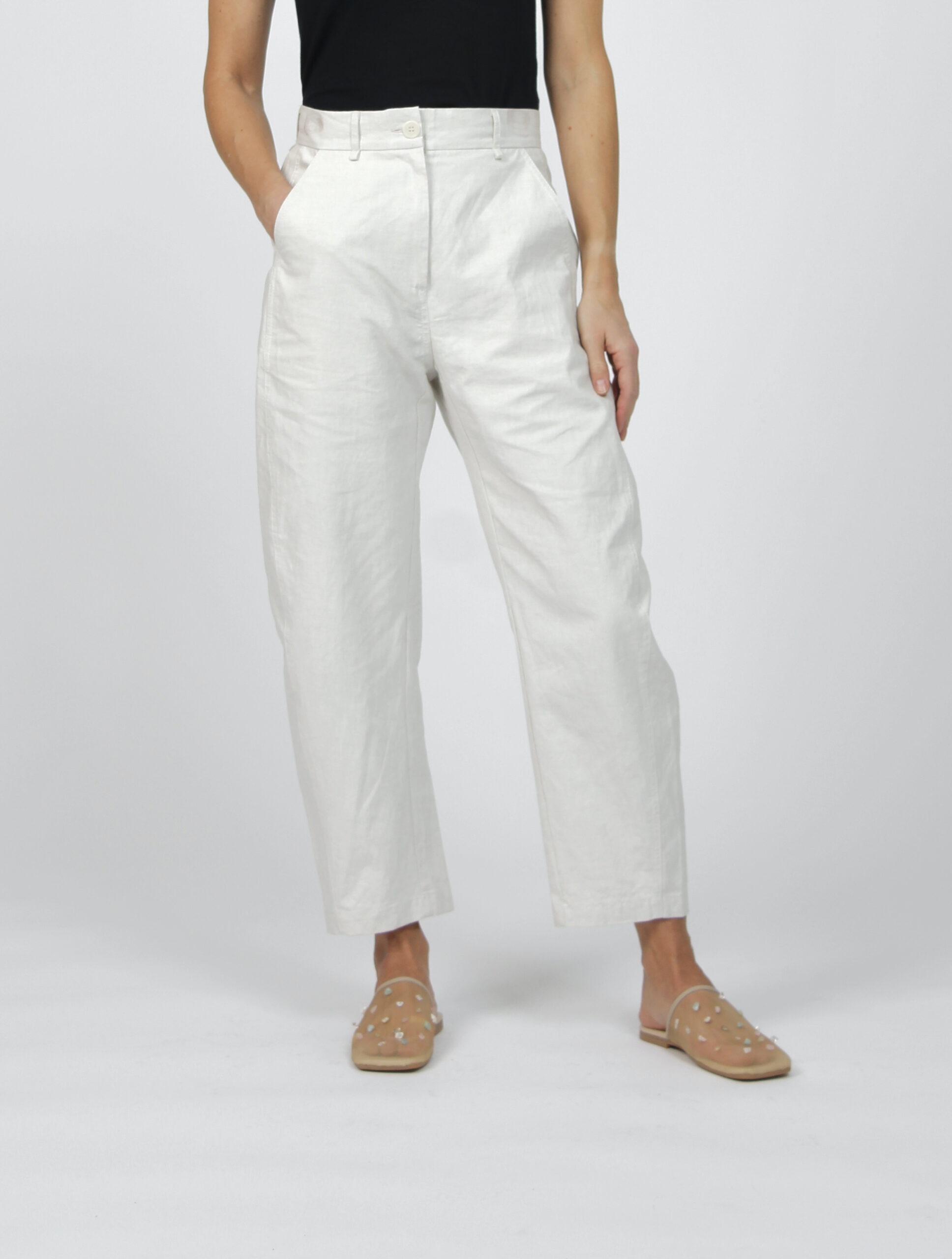 Coated linen banana pants quantity