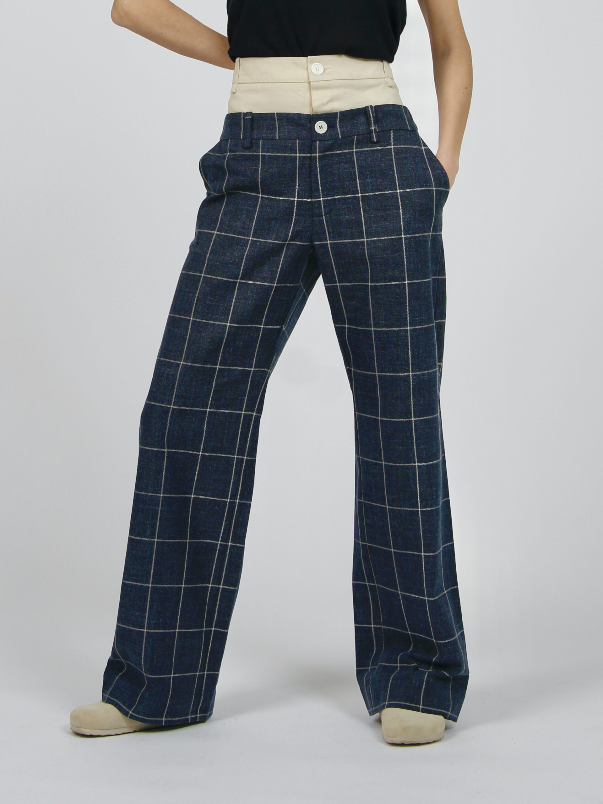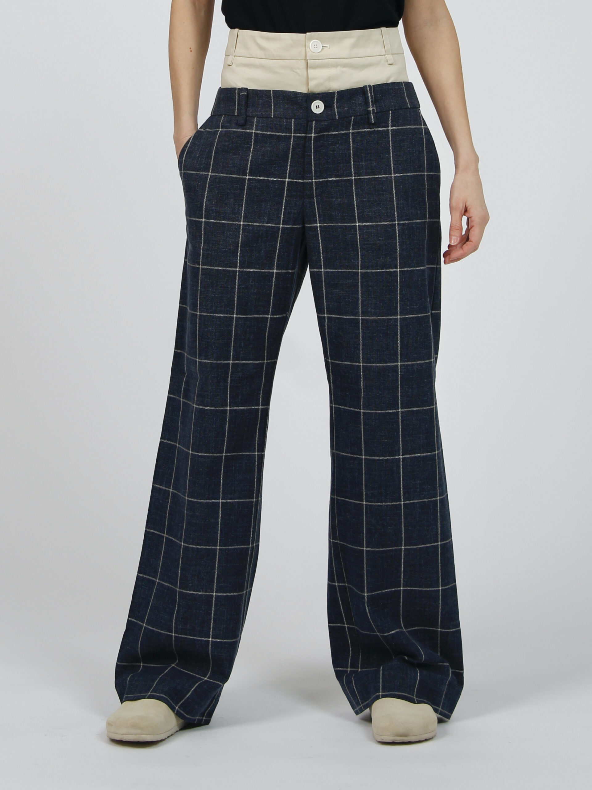 Double-waisted wide-leg trousers