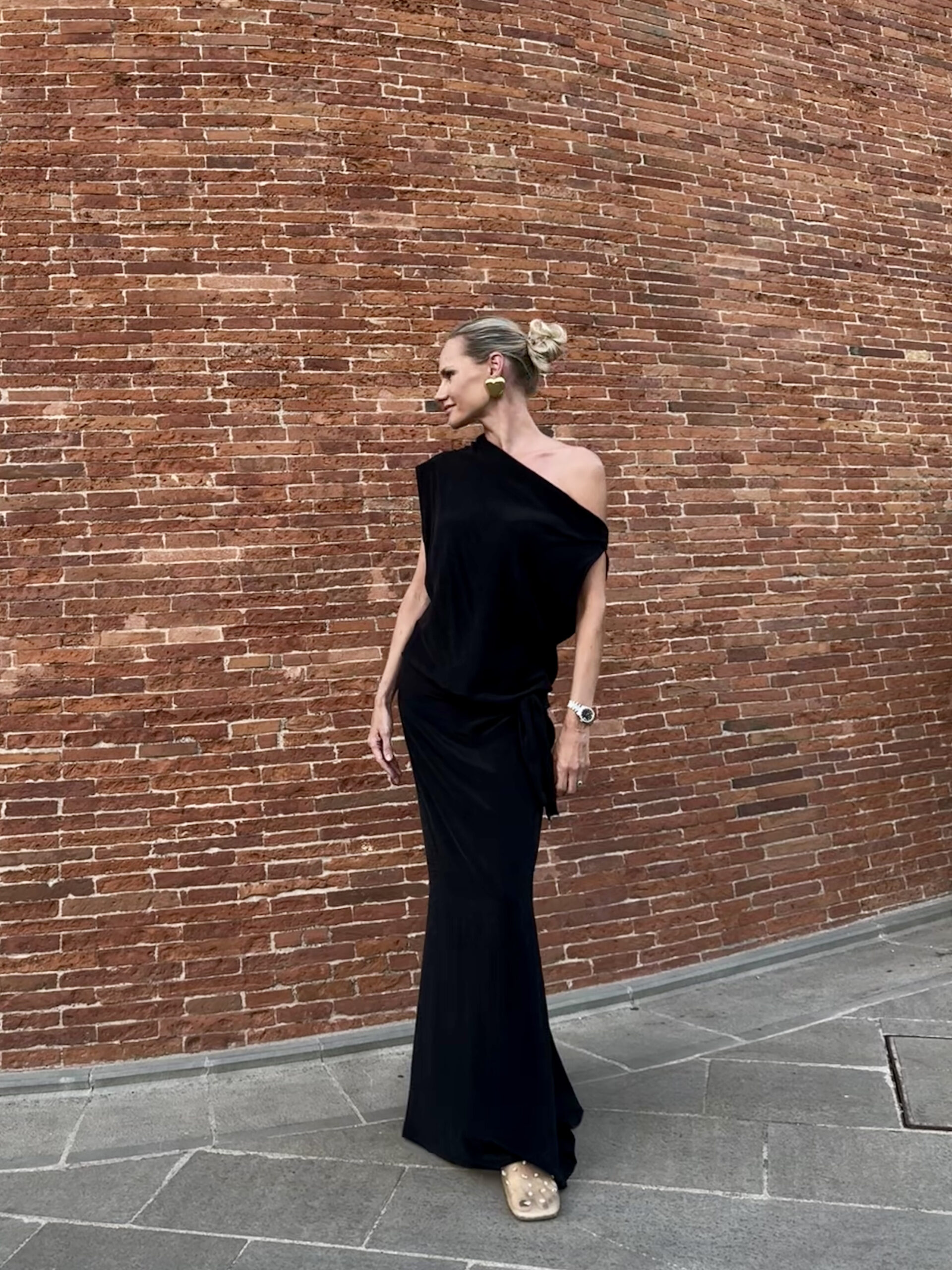 One-shoulder silk dress