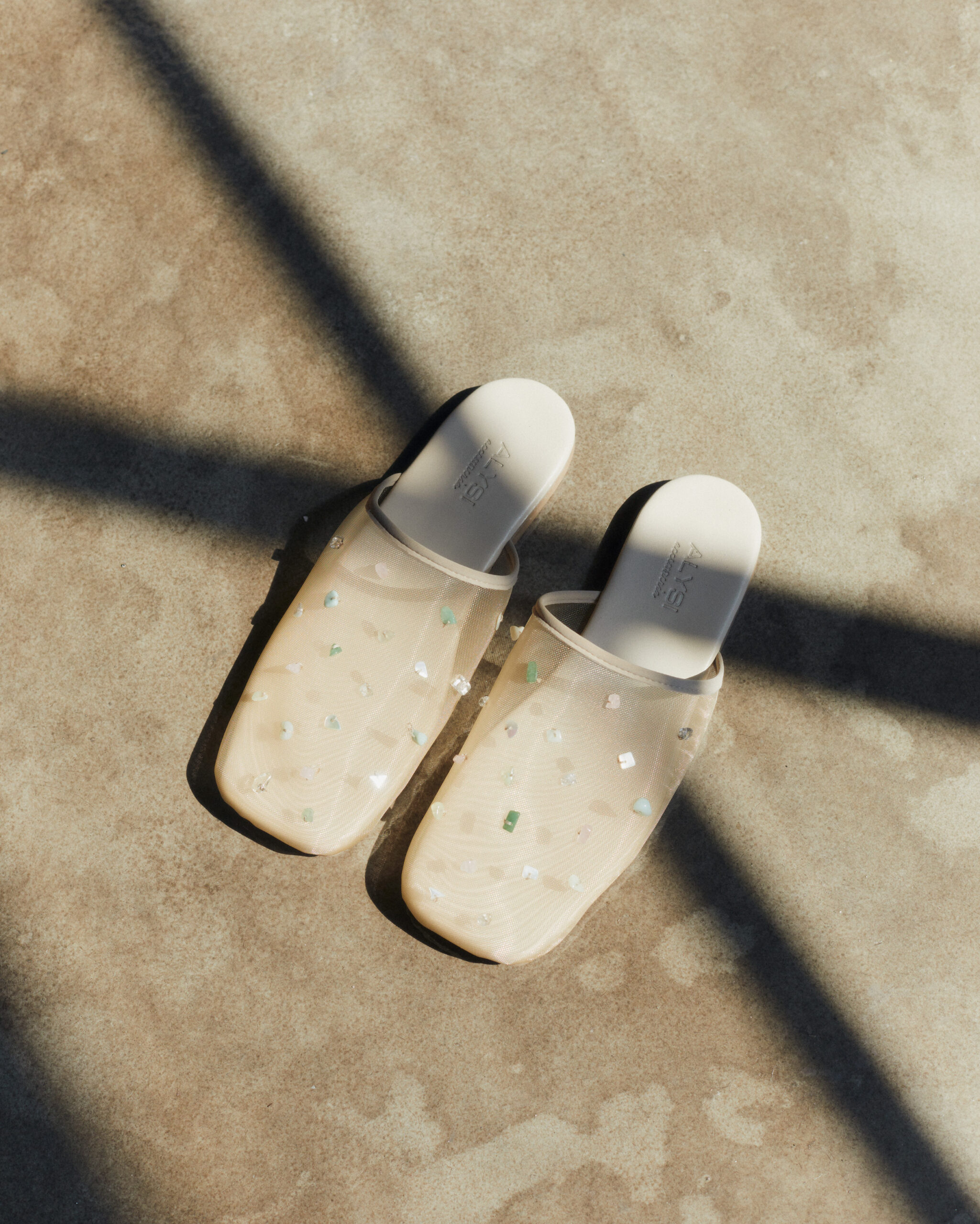 Beaded mesh mules