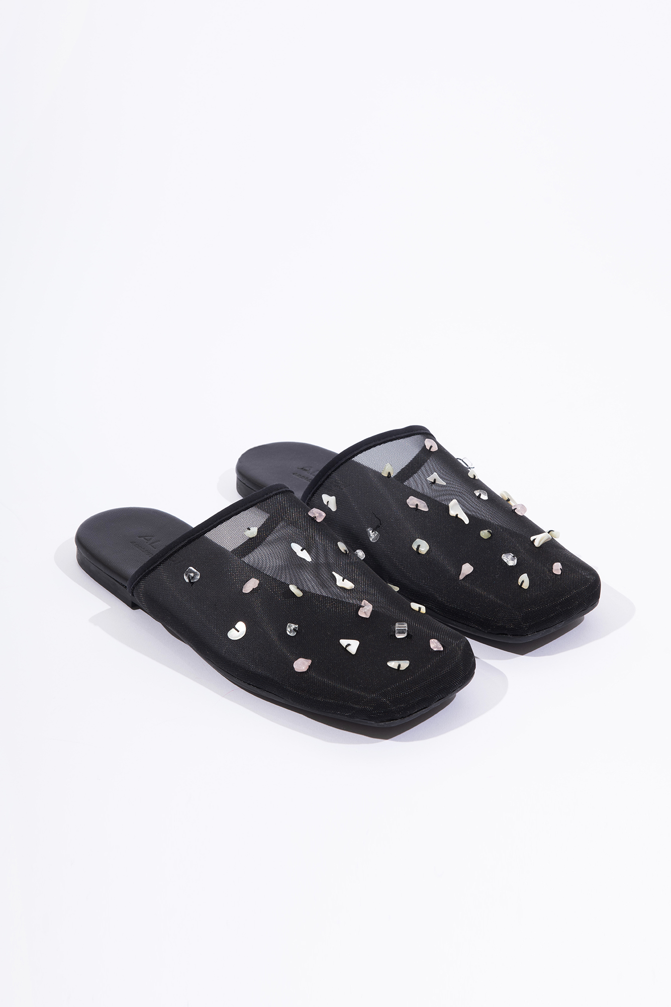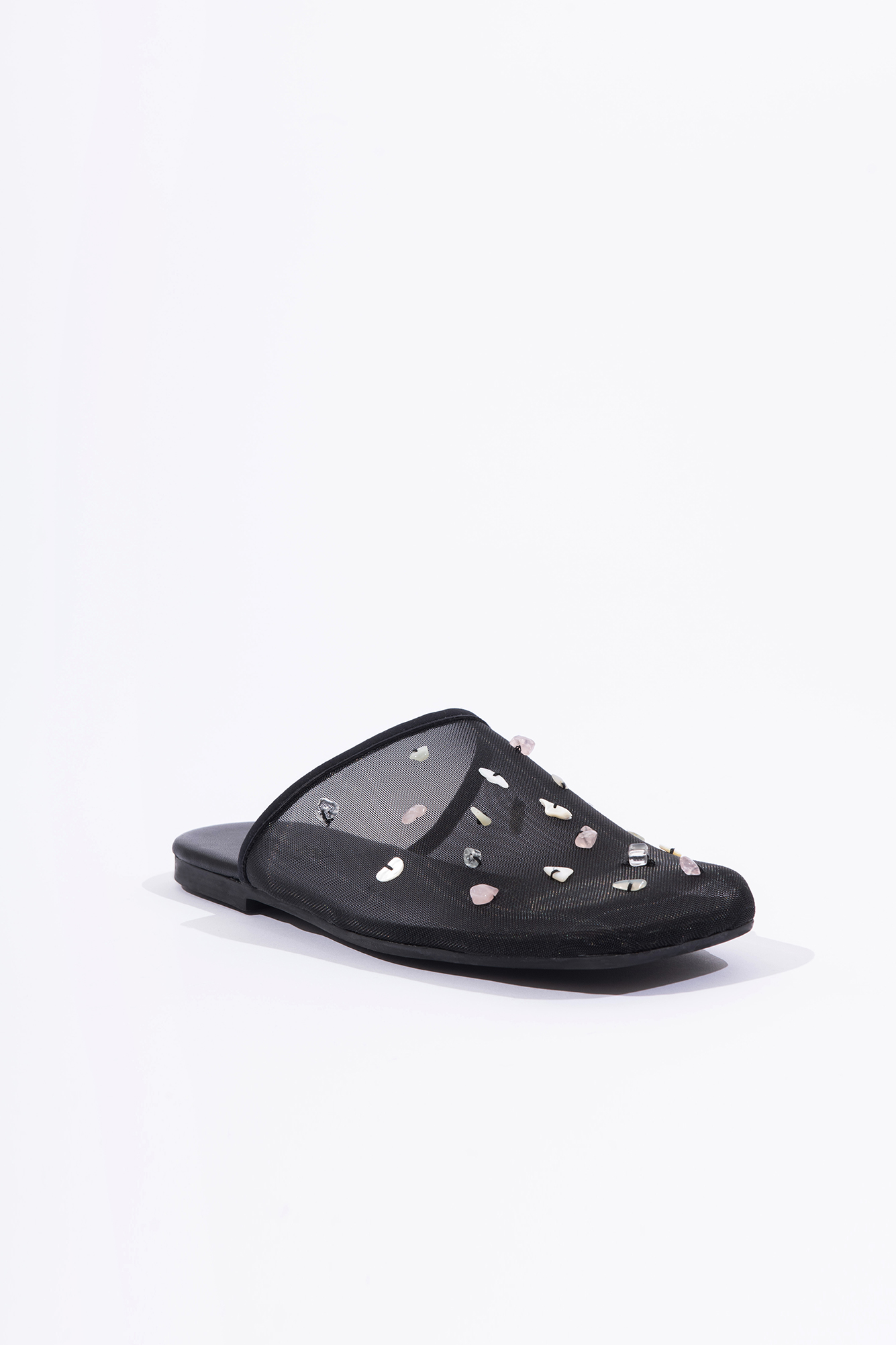 Beaded mesh mules