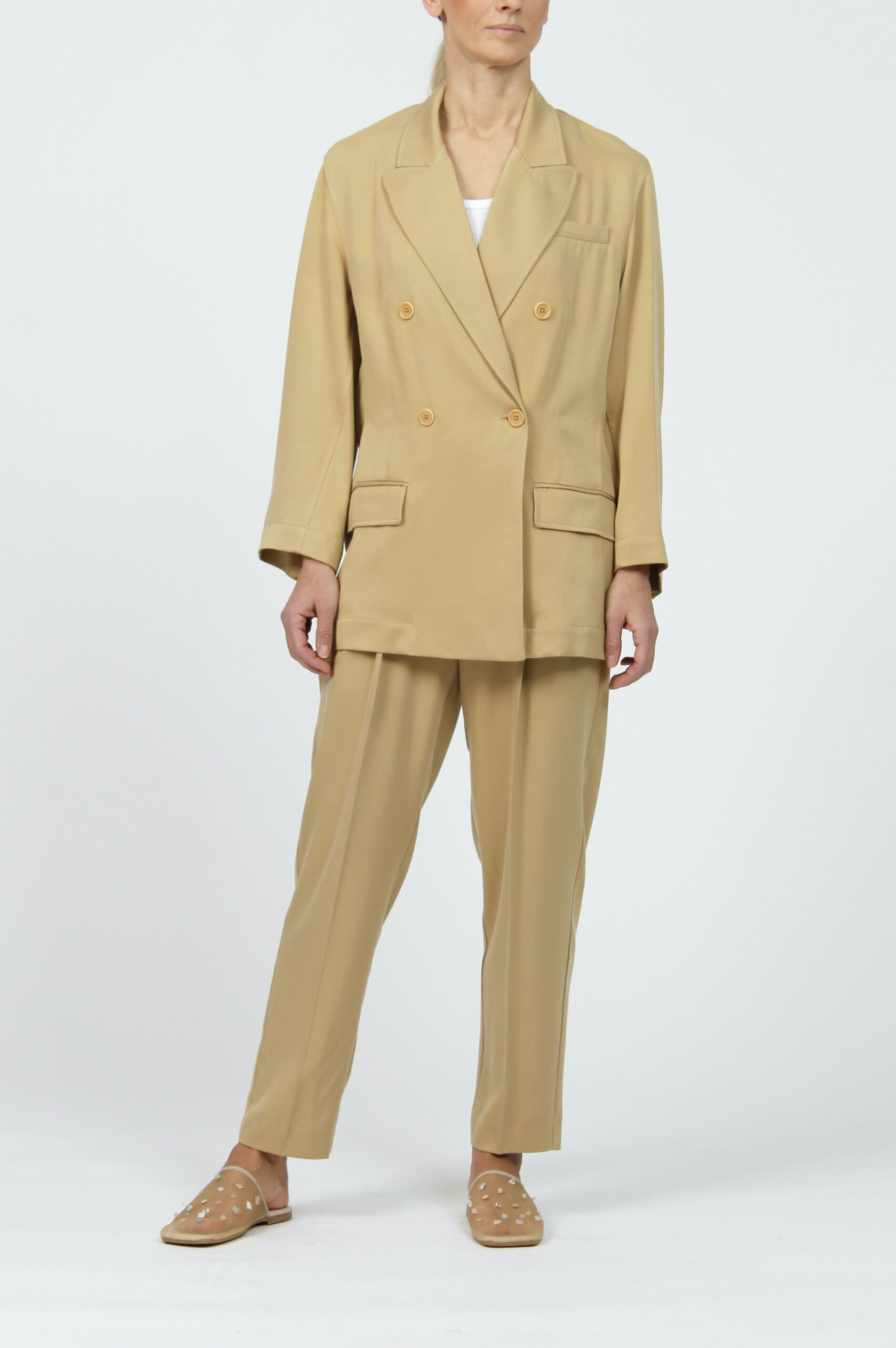 Double-breasted opened back blazer