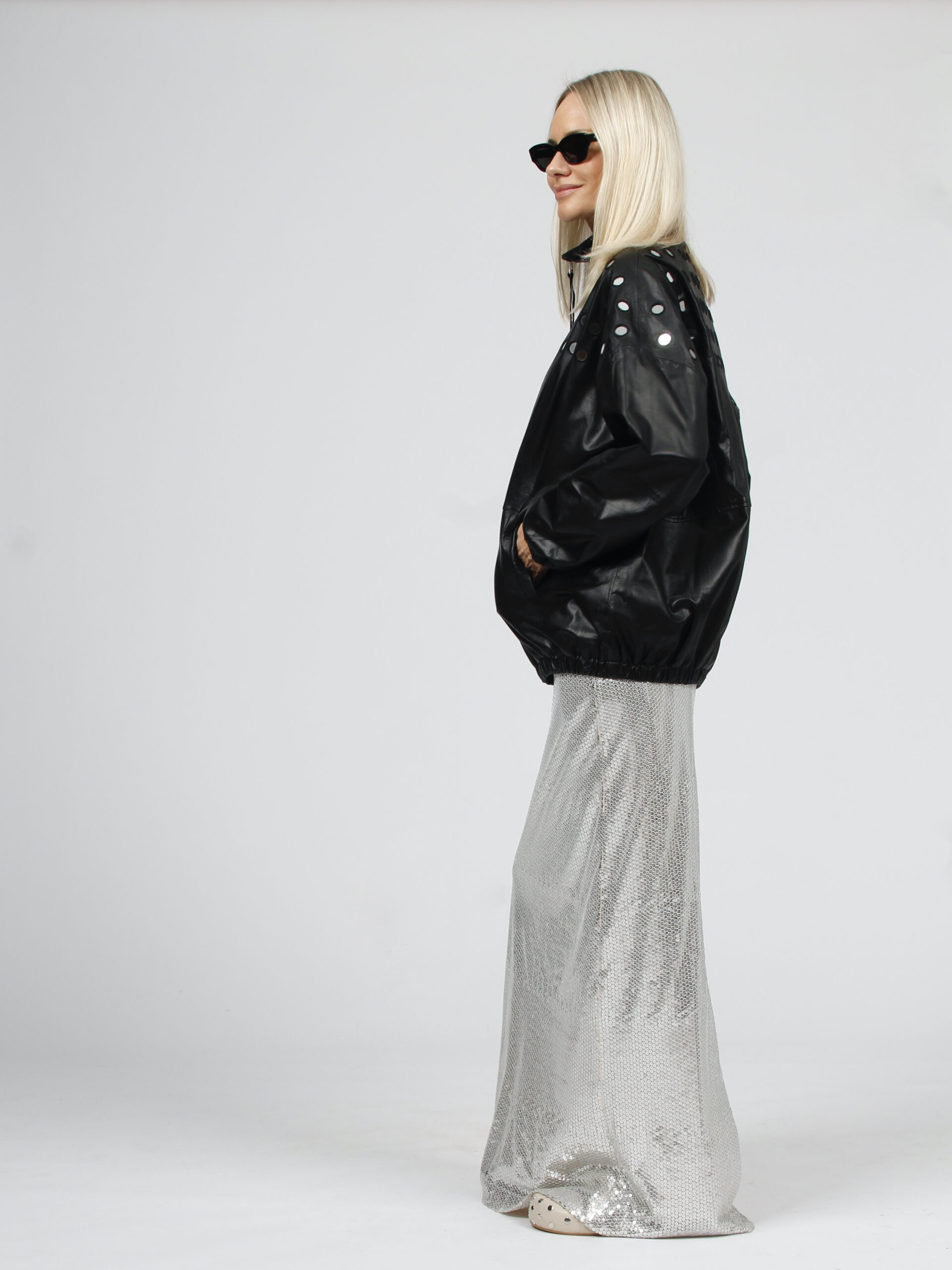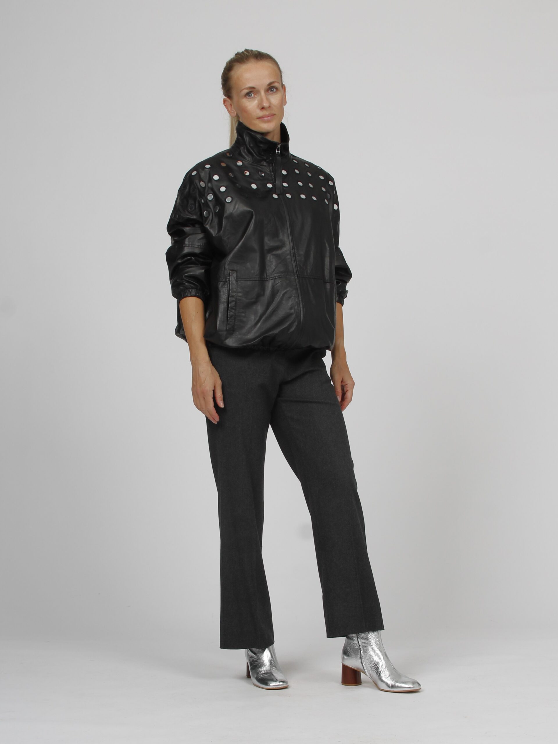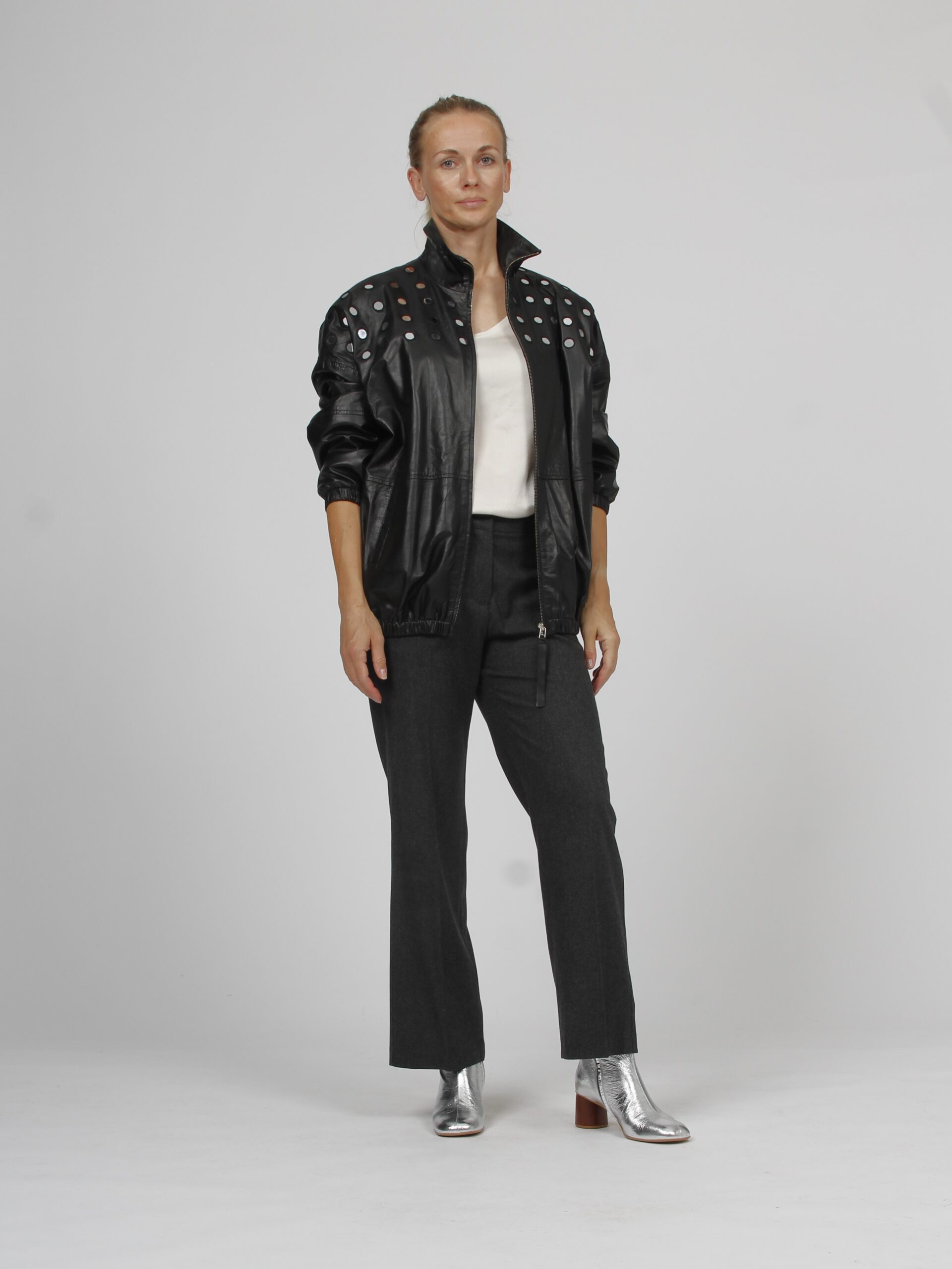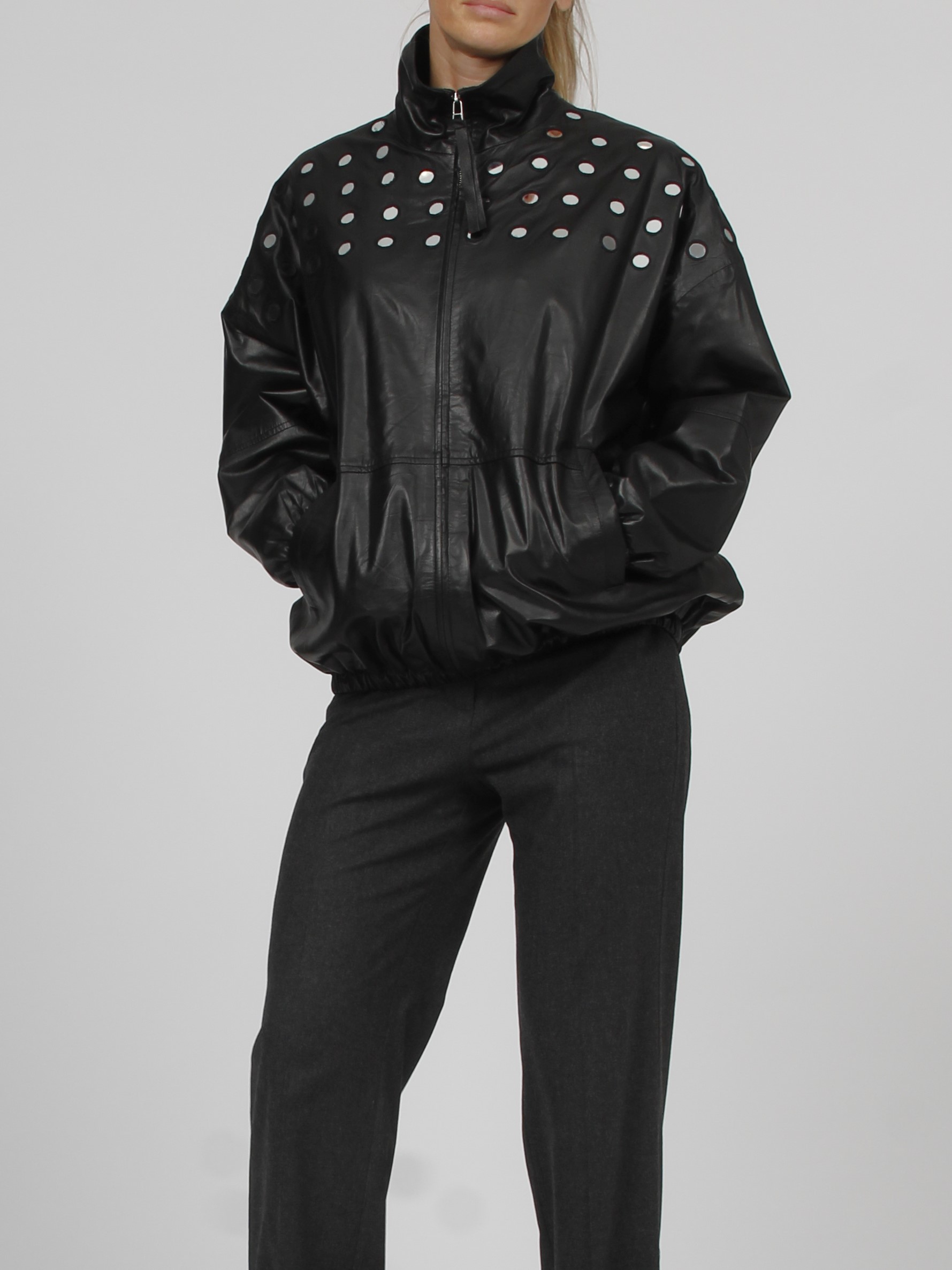 Leather bomber jacket