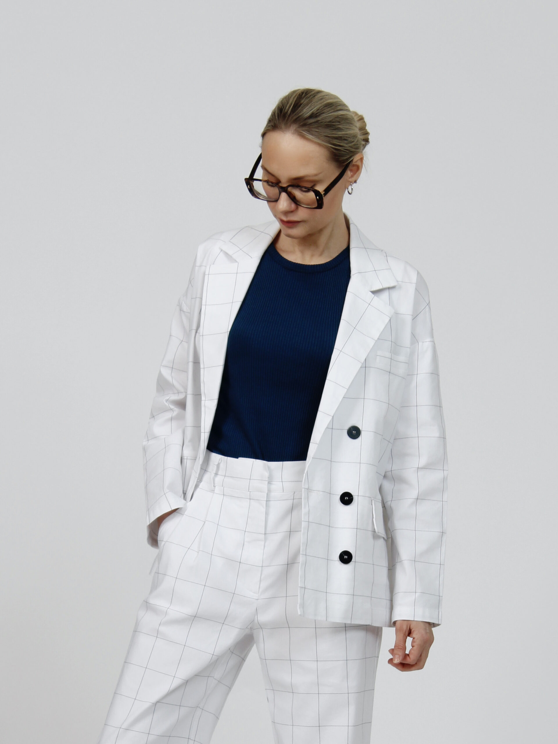 Double-breasted checked jacket