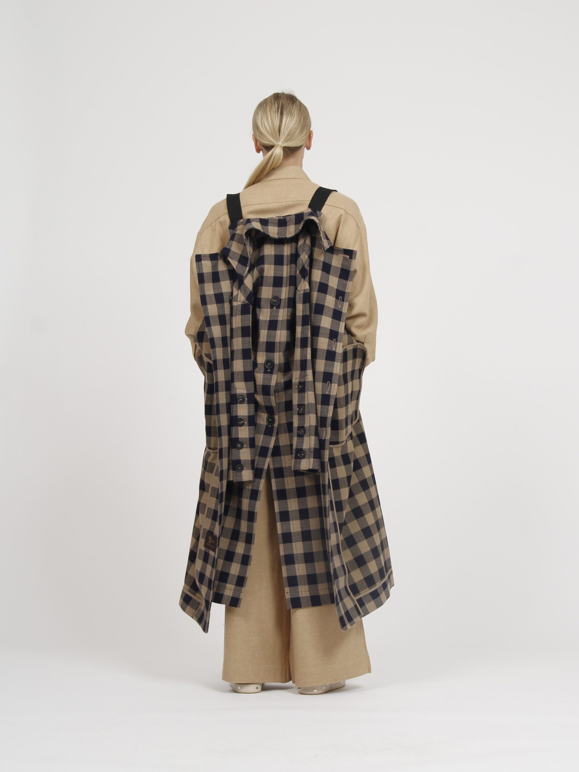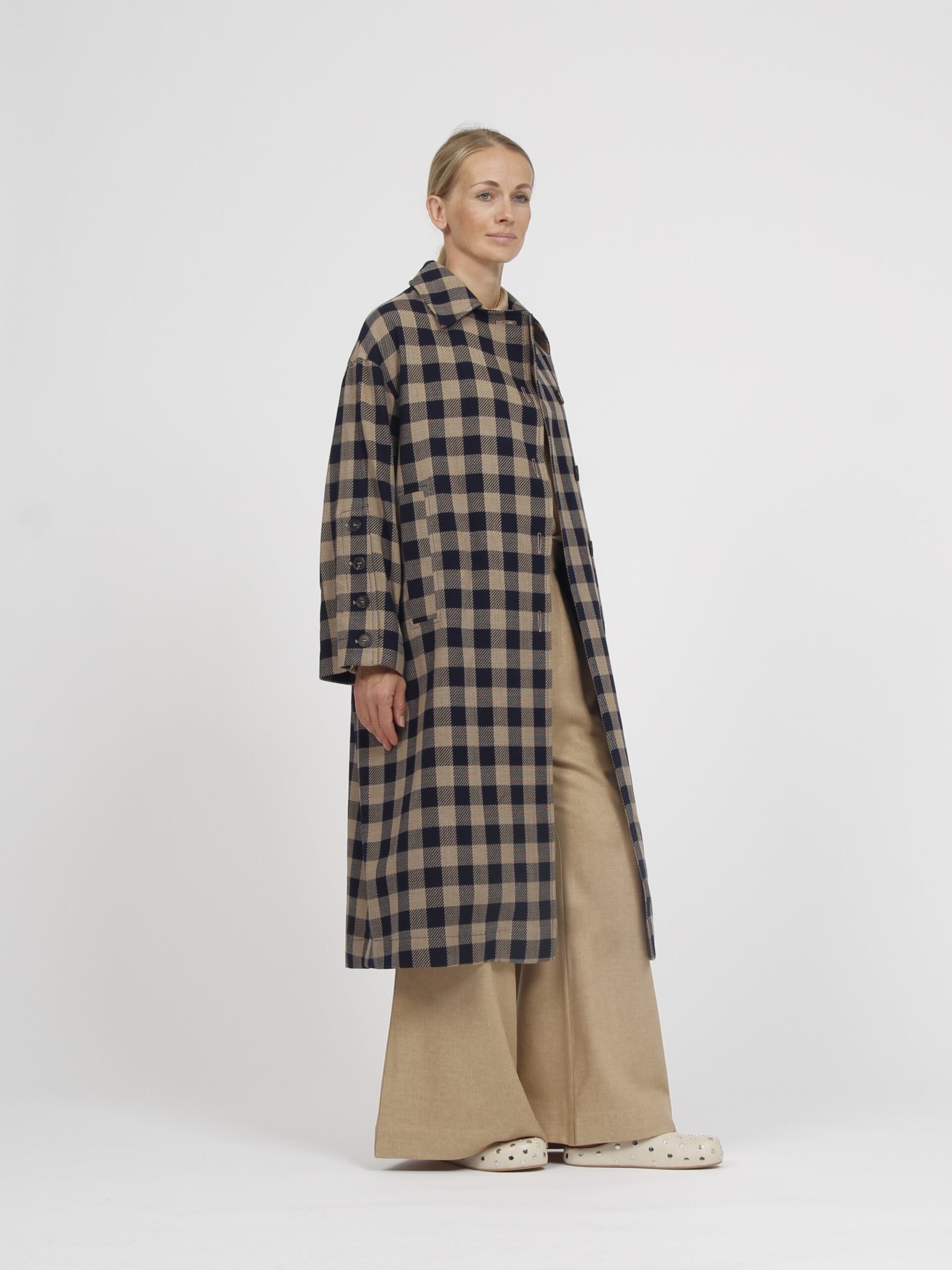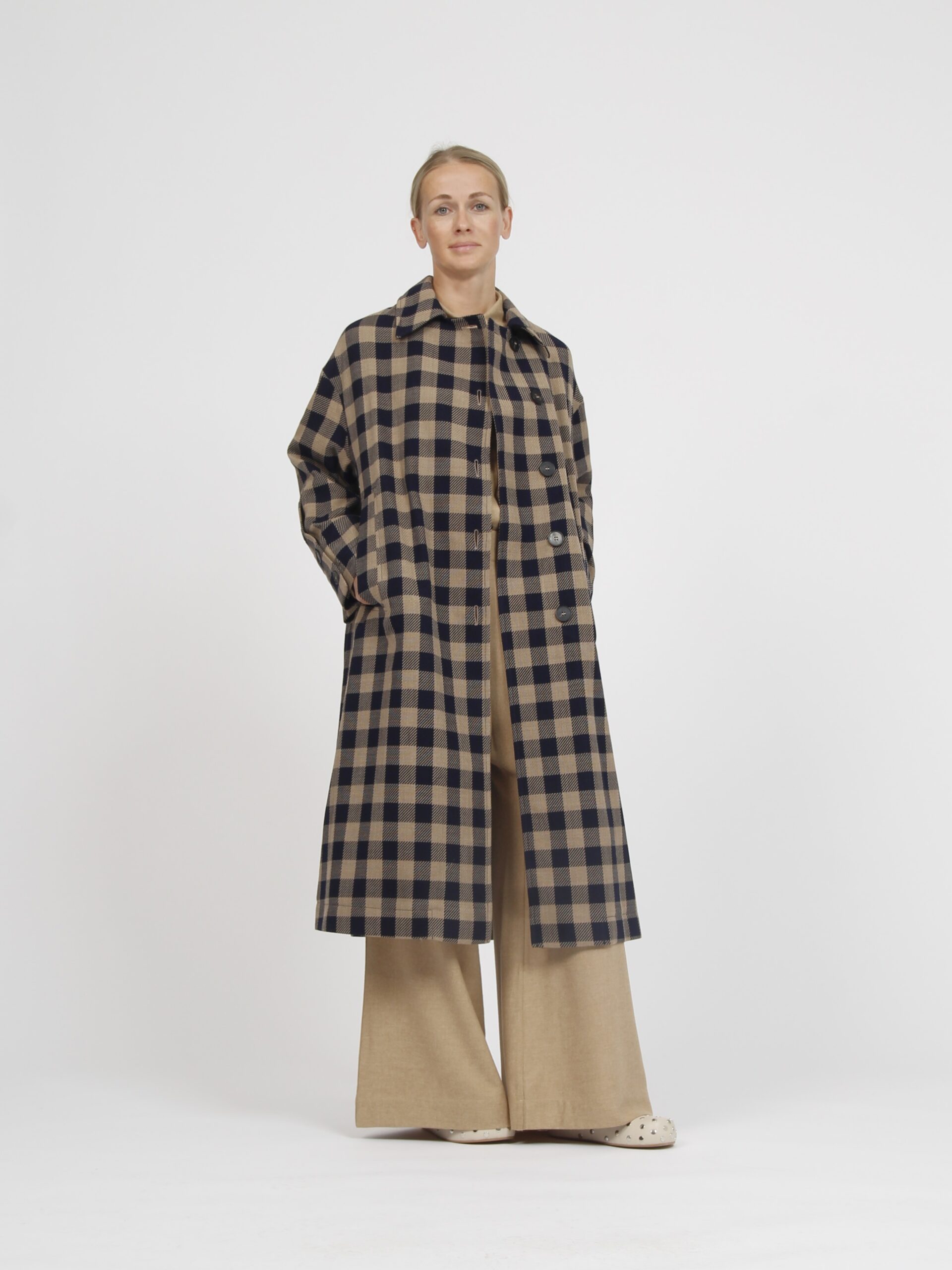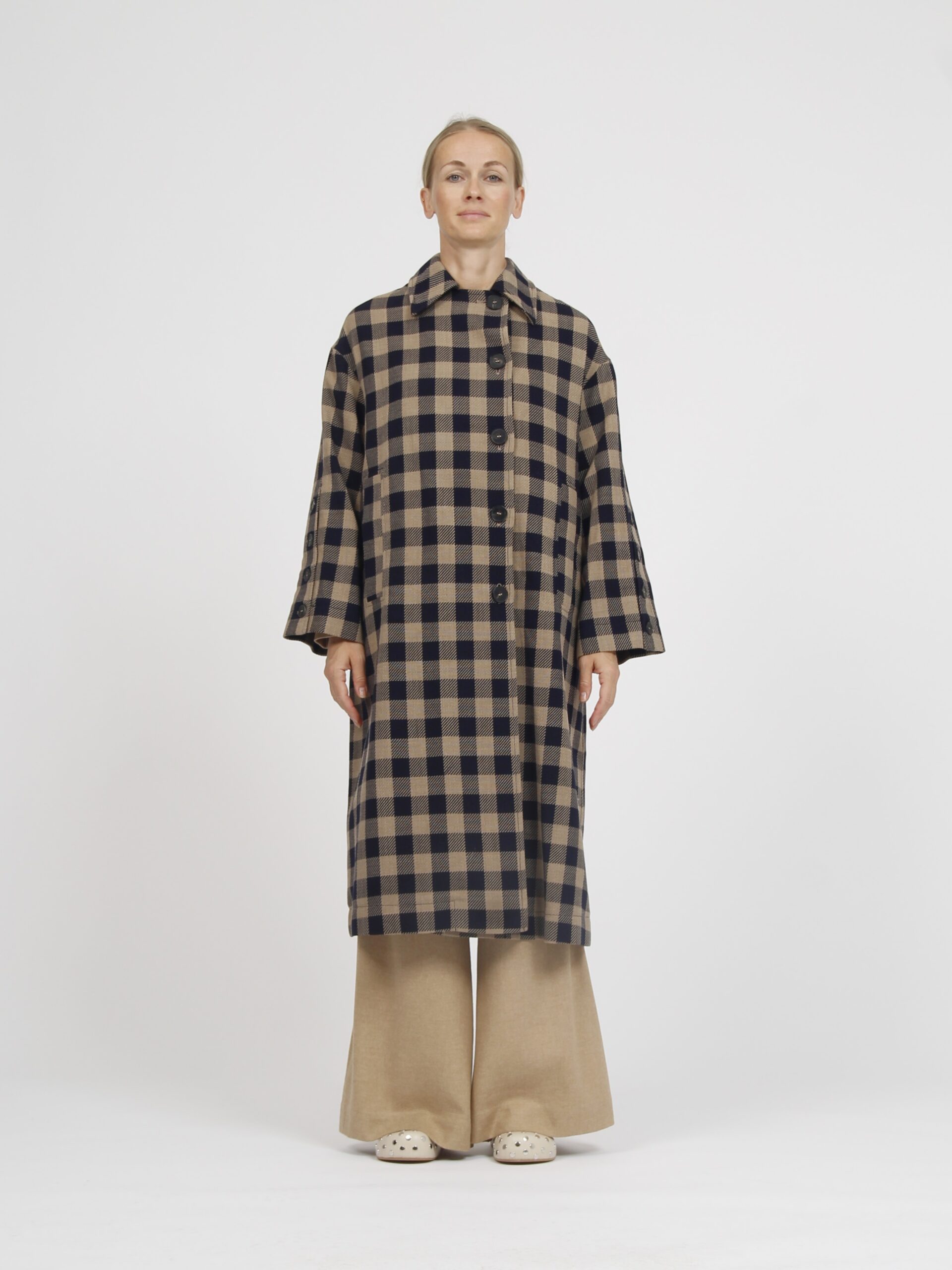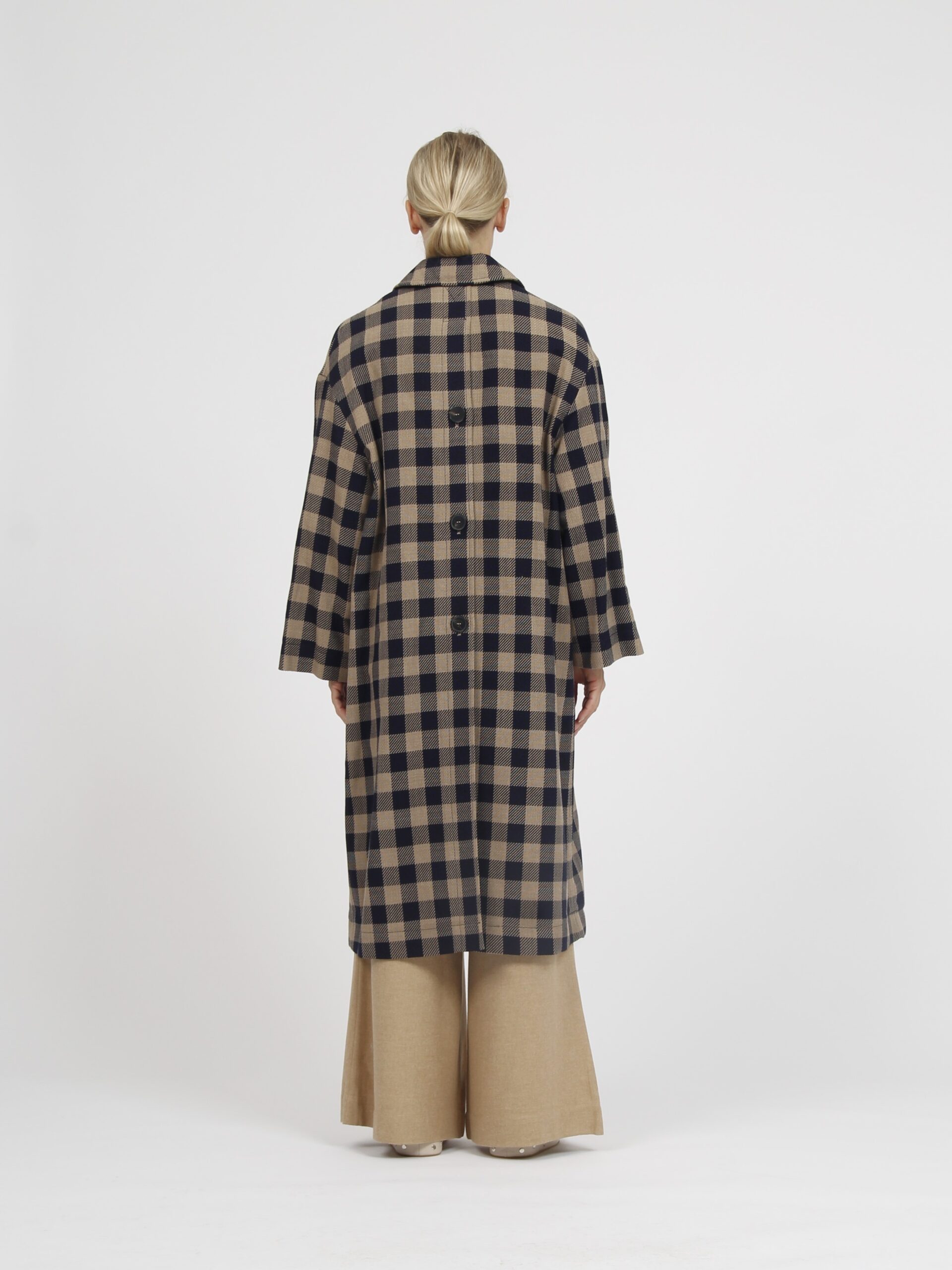 Long checked wool coat