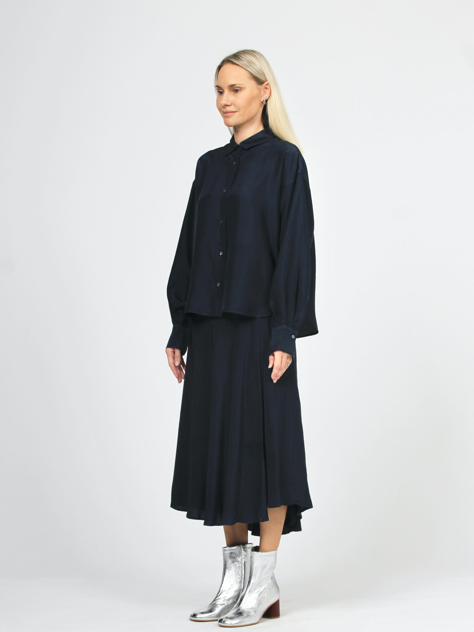 A-line midi skirt in habutai silk