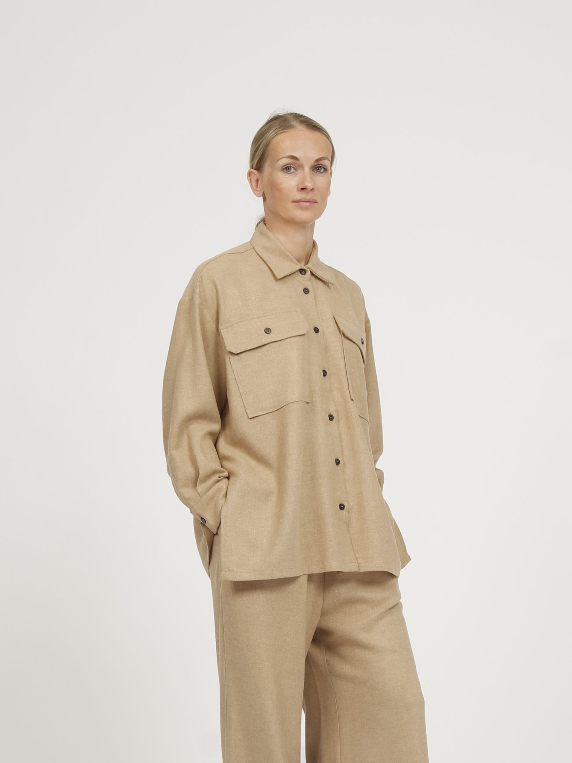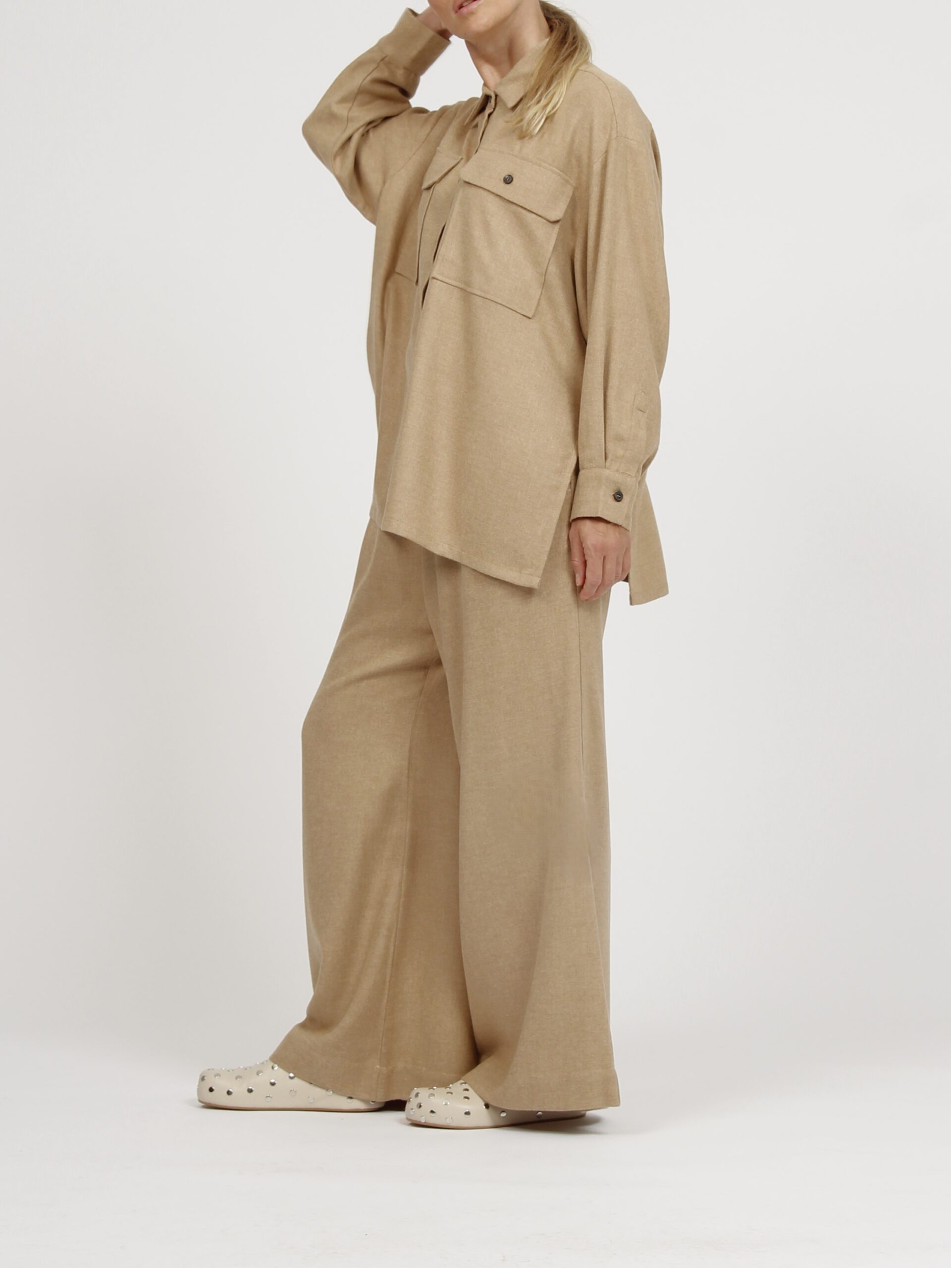 Over fit viscose/wool flannel shirt