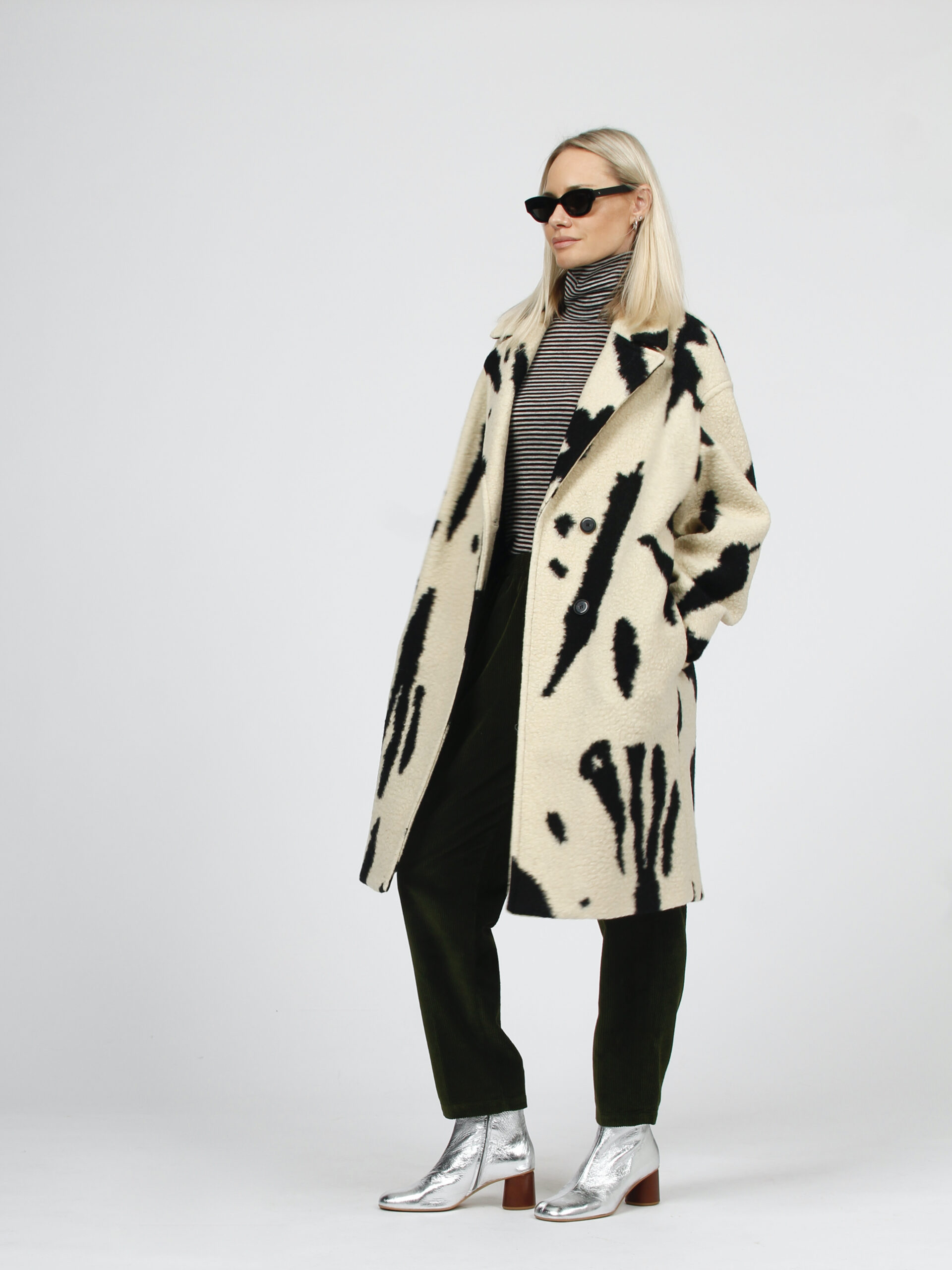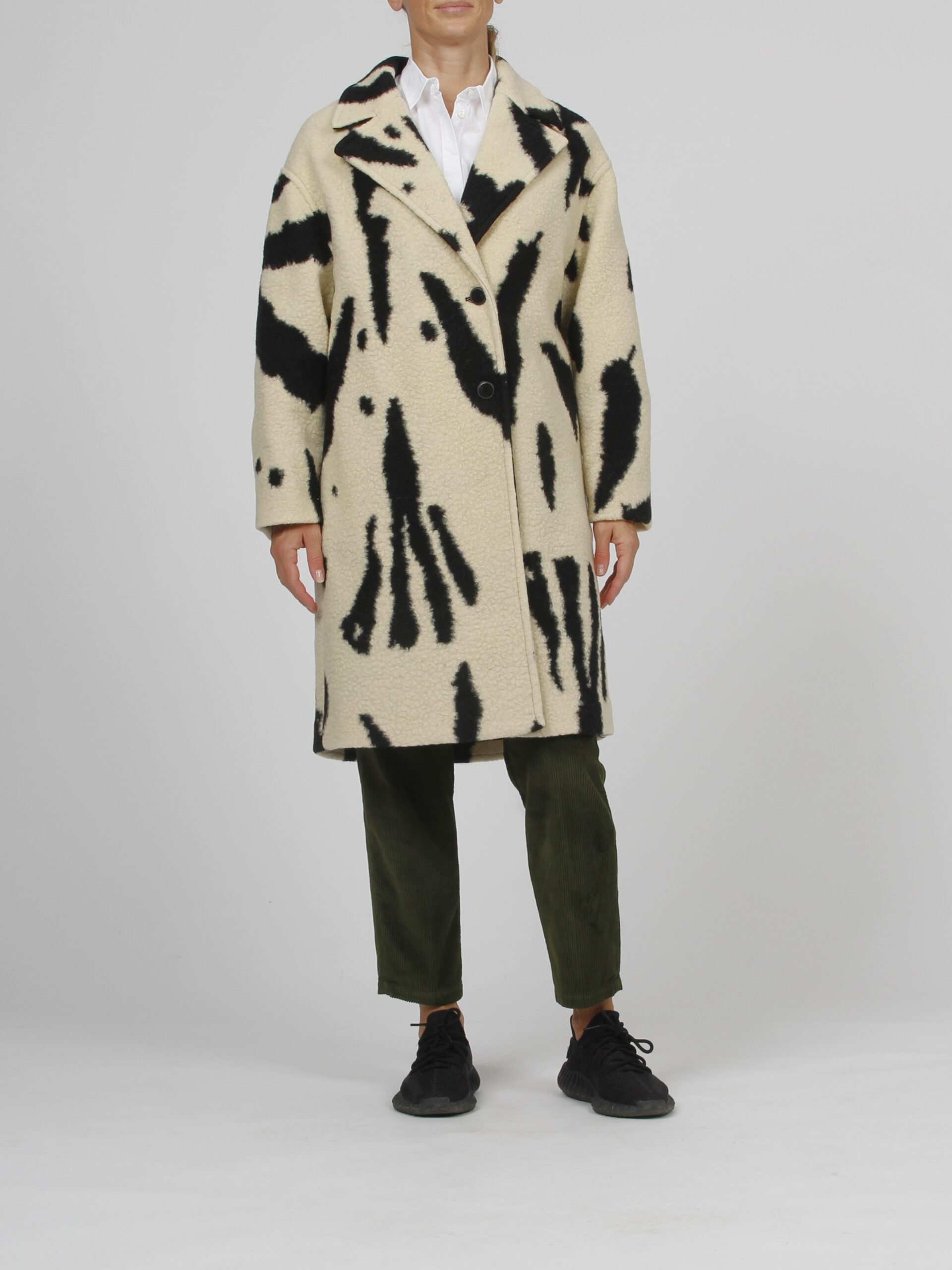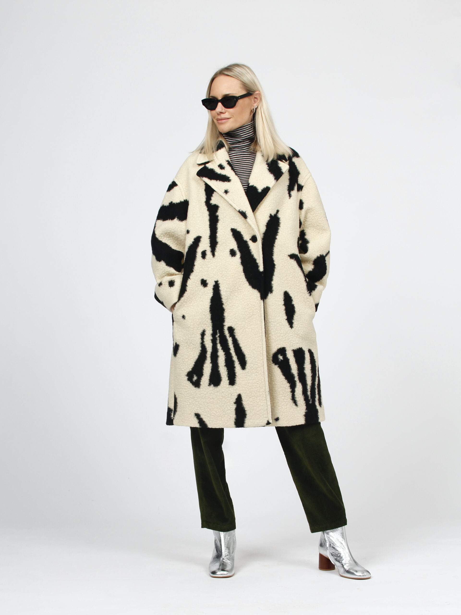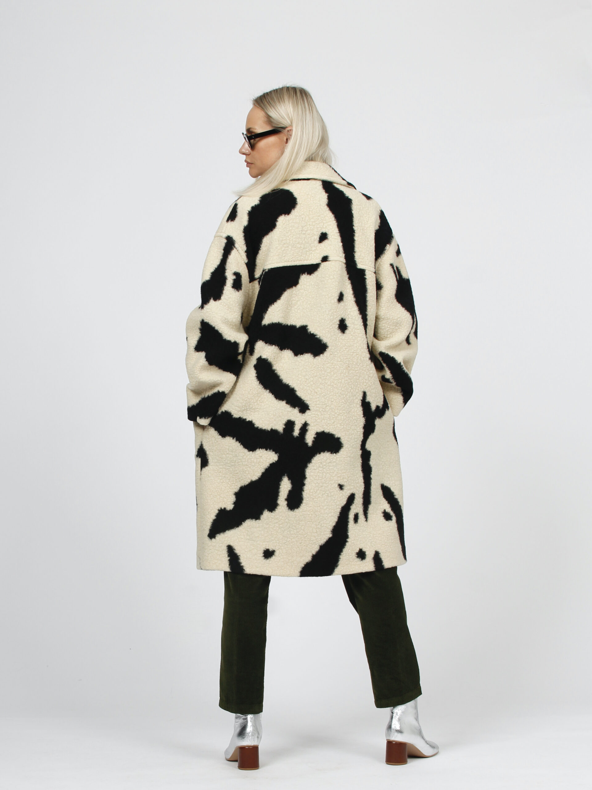 Piebald print coat in wool cloth